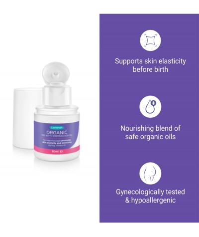Organiczny olejek do masażu krocza, przeznaczony dla kobiet planujących poród naturalny od 34 tygodnia ciąży.