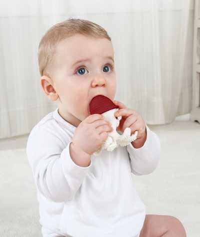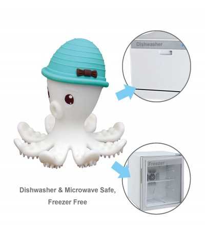 Silikonowy gryzaczek 3D został zaprojektowany tak, aby dziecko nie miało możliwości zadławienia się. Ośmiorniczka może stać się ulubionym przyjacielem maluszka podczas ząbkowania. Gładka powierzchnia najczęściej służy dziecku do ssania, można też zrobić z niej kulkę a macki wyposażone w wypustki służą jako gryzak oraz szczoteczka do zębów. Kształt i rozmiar ułatwiają chwytanie.